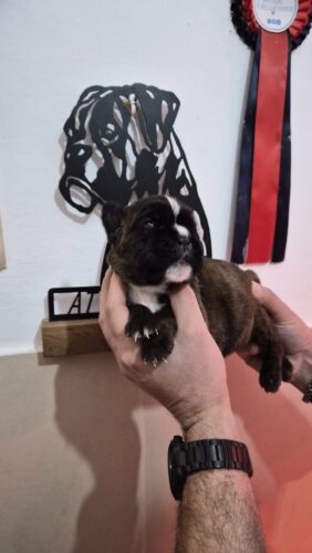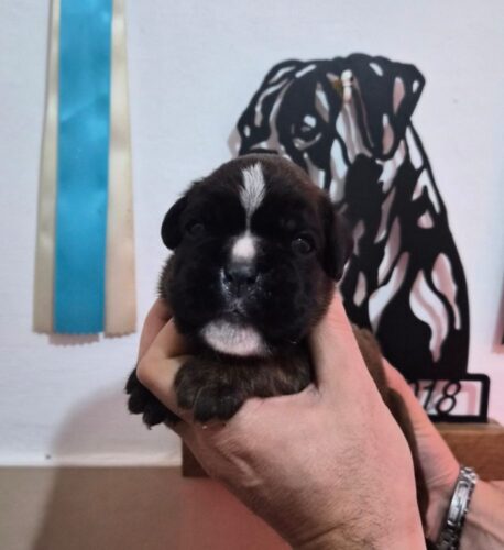Meravigliosa cucciola di Boxer. Nata e cresciuta in ambiente domestico e abituata ai bambini. La cucciola verrà ceduta con pedigree ufficiale ENCI, sverminata e vaccinata dopo il settantesimo giorno. I genitori e i nostri cuccioli sono visibili presso il nostro allevamento amatoriale. Contattare solo se realmente interessati e amanti della razza al numero 351 652 1415
