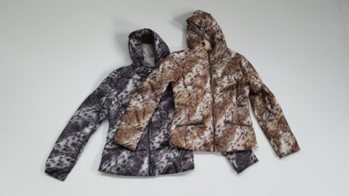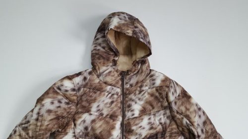 Giubbotto da donna con cappuccio con motivo camouflage reversibile.